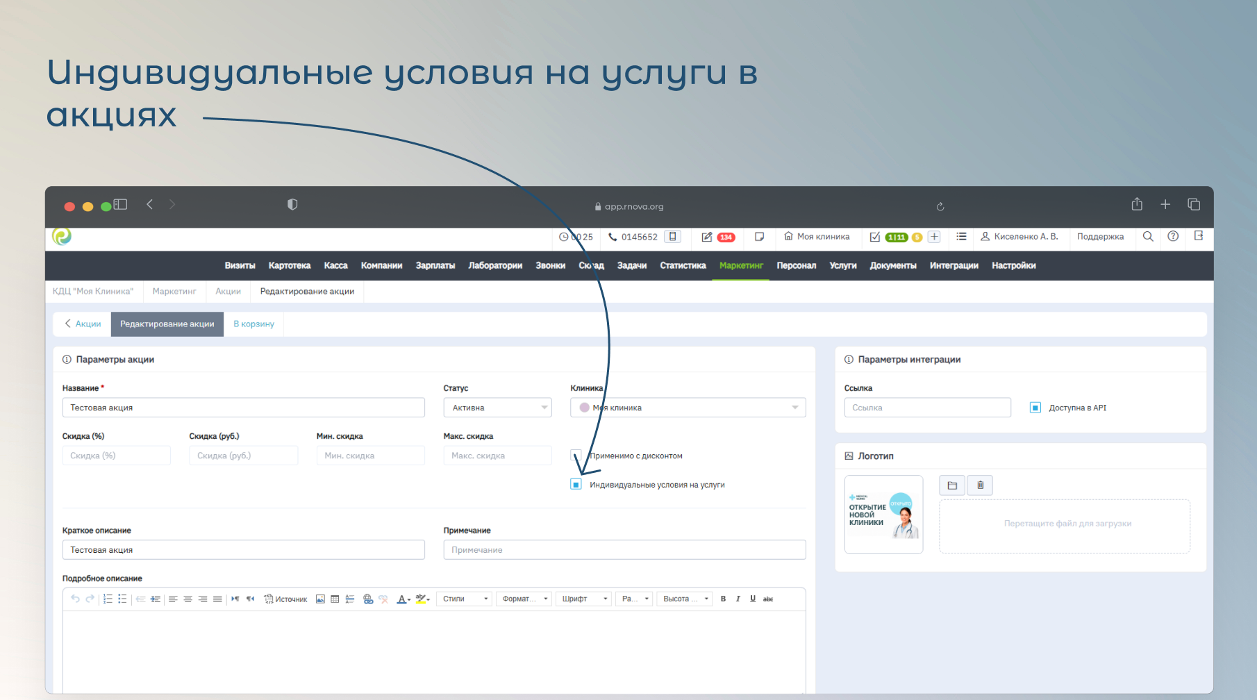 В карточке акции «Маркетинг → Акции» добавлен чекбокс «Индивидуальные условия на услуги».