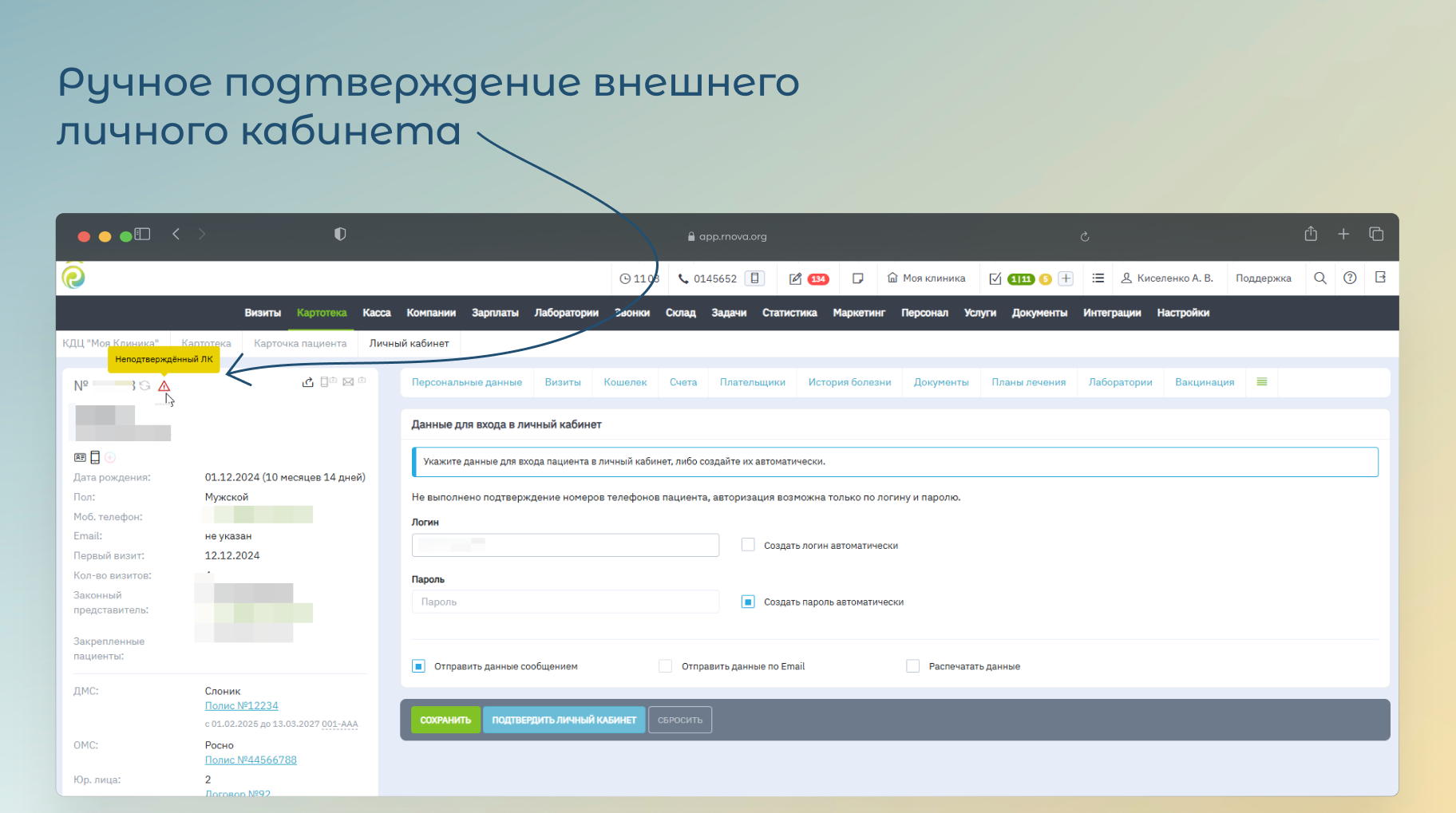 Теперь у клиник появилась возможность вручную подтверждать личный кабинет (ЛК) пациента, который был создан внешними информационными системами.