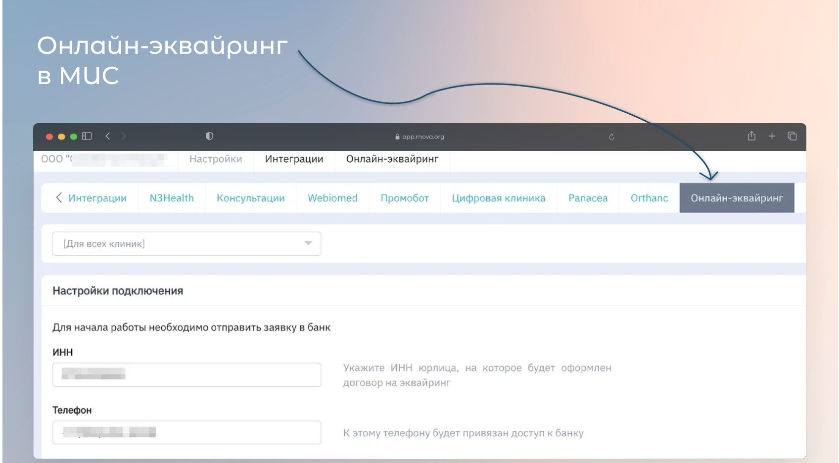 - онлайн-эквайринг можно подключать как для всей клиники, так и отдельно для филиалов