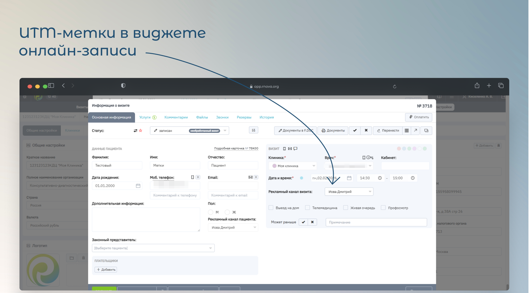 Мы доработали виджет онлайн-записи, добавив передачу UTM-меток при создании визита. Это позволяет корректно фиксировать источник привлечения пациента и улучшить аналитику рекламных каналов.